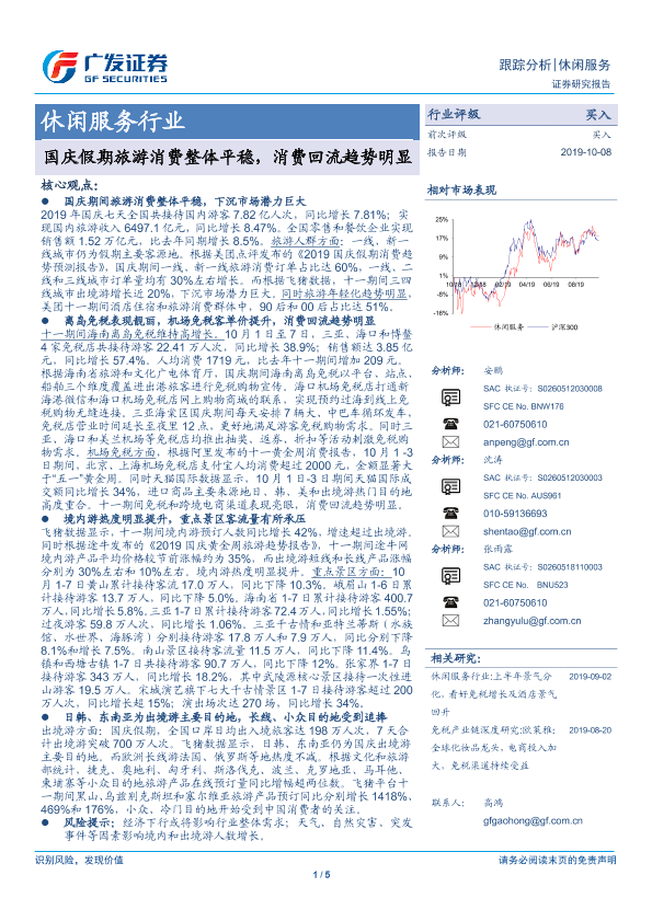 【广发证券】【20191008】国庆假期旅游消费整体平稳,消费回流趋势明显-5页