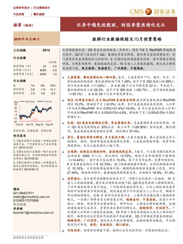 【海通证券】【20191009】旅游行业数据跟踪及10月投资策略-18页