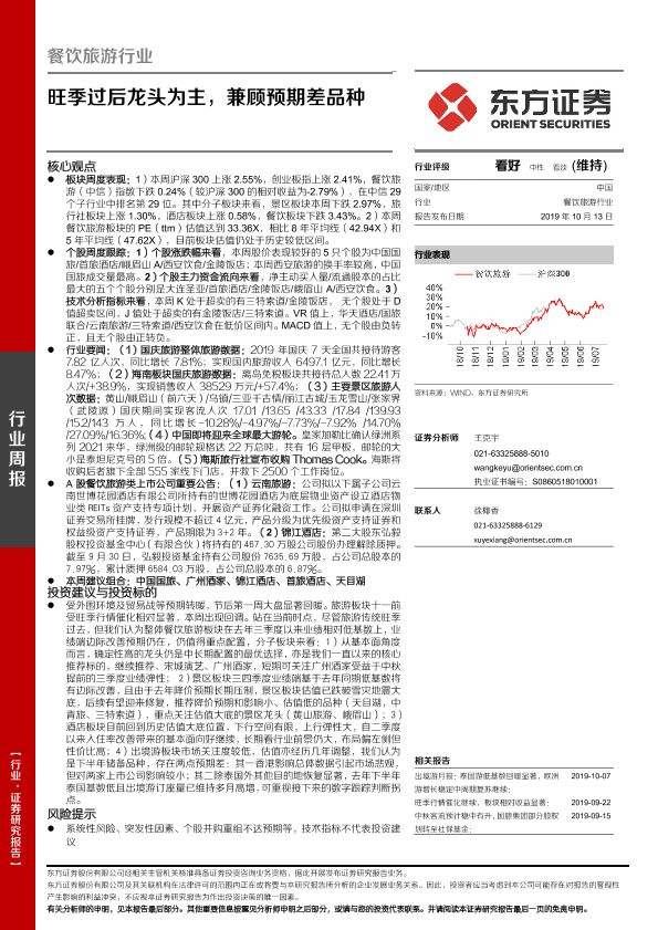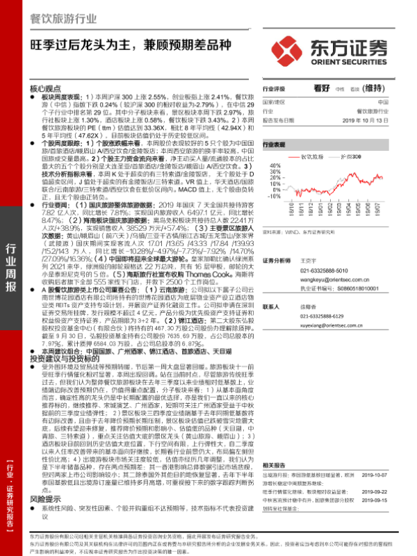 【东方证券】【20191013】餐饮旅游行业:旺季过后龙头为主,兼顾预期差品种-22页