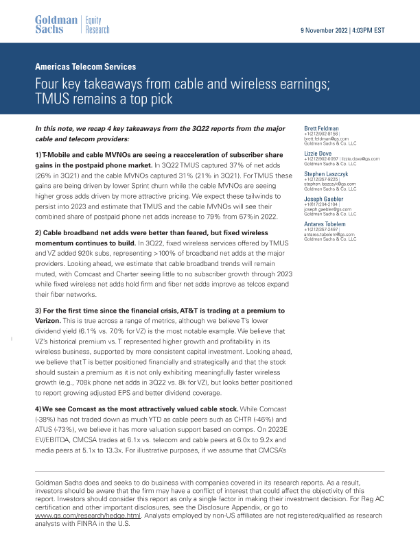 【Goldman Sachs】【20221109】r key takeaways from cable and wireless earnings; TMUS remains a top pick-19页