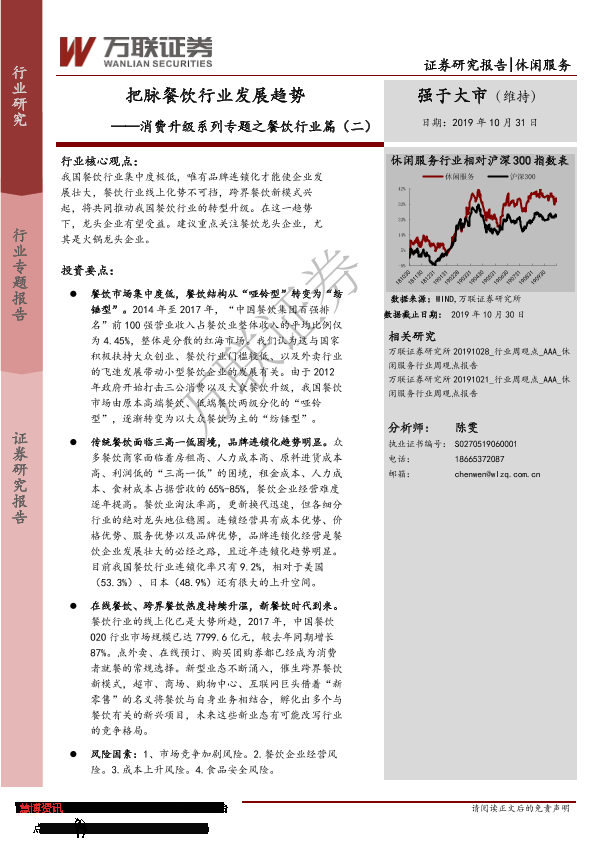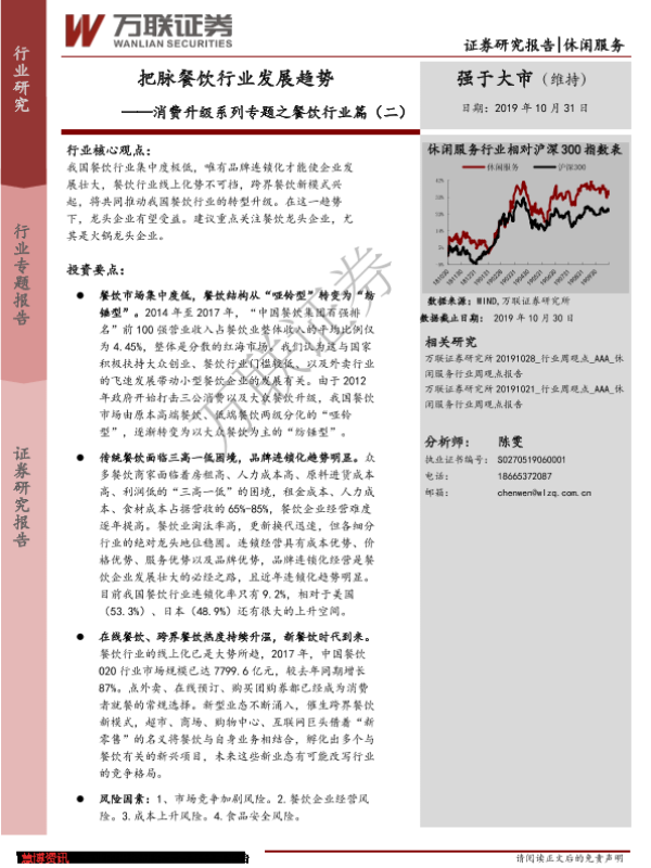 【万联证券】【20191031】消费升级系列专题之餐饮行业篇(二):把脉餐饮行业发展趋势-16页