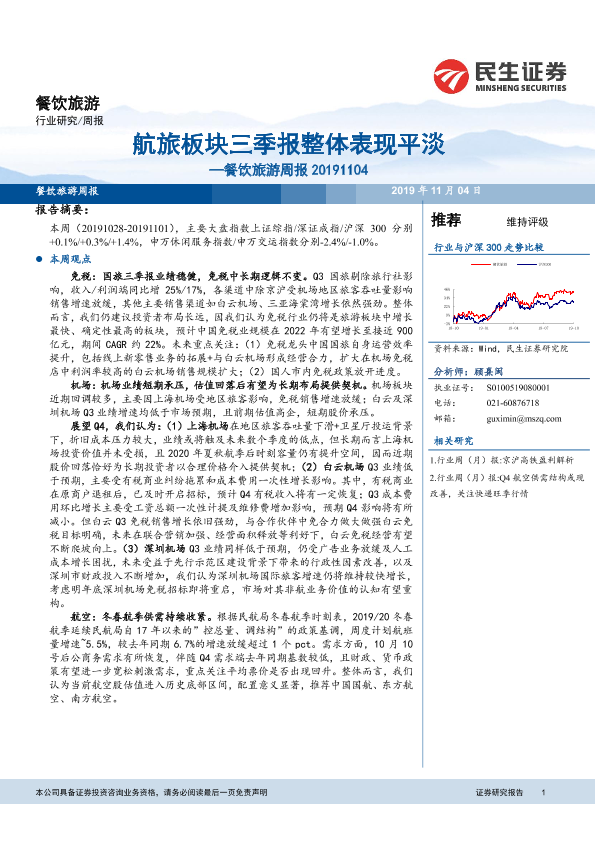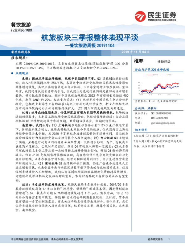 【民生证券】【20191104】航旅板块三季报整体表现平淡-14页