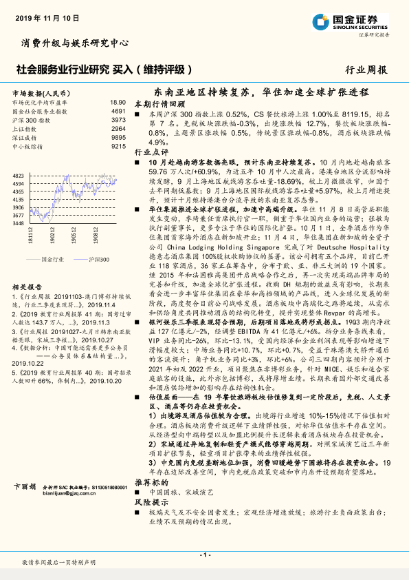【国金证券】【20191110】社会服务业行业研究周报:东南亚地区持续复苏,华住加速全球扩张进程-11页