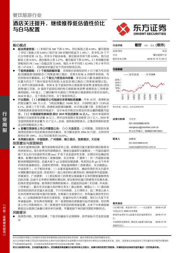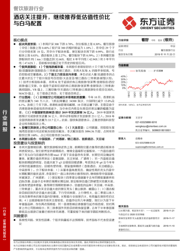 【东方证券】【20191123】餐饮旅游行业周报:酒店关注提升,继续推荐低估值性价比与白马配置-23页