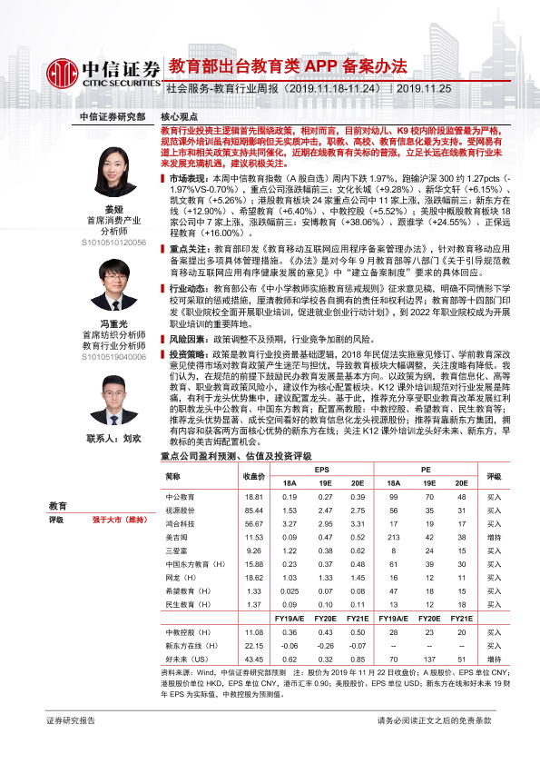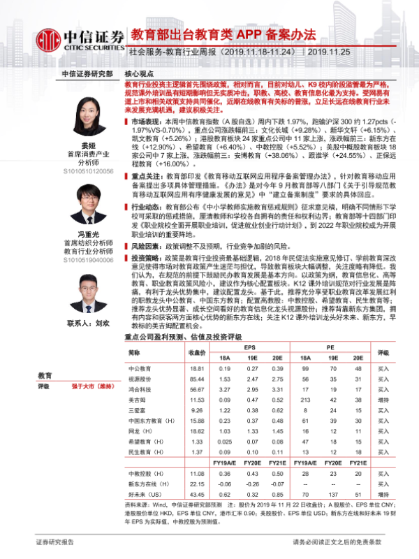 【中信证券】【20191125】社会服务-教育行业周报:教育部出台教育类APP备案办法-13页