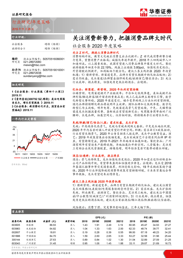 【华泰证券】【20191126】社会服务2020年度策略:关注消费新势力,把握消费品牌大时代-39页