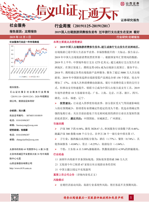【山西证券】【20191201】2019国人出境旅游消费报告发布 过半旅行支出发生在亚洲-9页