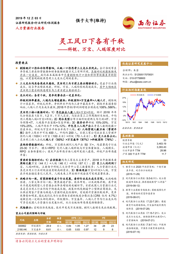 【西南证券】【20191203】人力资源行业报告:灵工风口下各有千秋-科锐、万宝、人瑞深度对比-21页