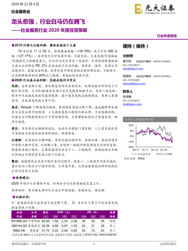 【光大证券】【20191204】社会服务行业2020年度投资策略:龙头愈强,行业白马仍在腾飞-21页