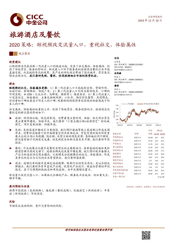 【中金公司】【20191210】旅游酒店及餐饮行业2020策略:短视频改变流量入口,重视社交、体验属性-33页