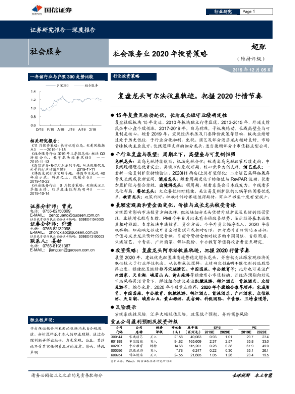 【国信证券】【20191205】社会服务业2020年投资策略:复盘龙头阿尔法收益轨迹,把握2020行情节奏-44页