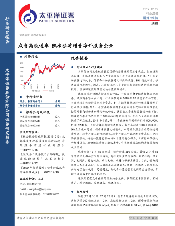 【太平洋证券】【20191222】消费者服务Ⅱ行业周报:成贵高铁通车 凯撒旅游增资海外服务企业-14页