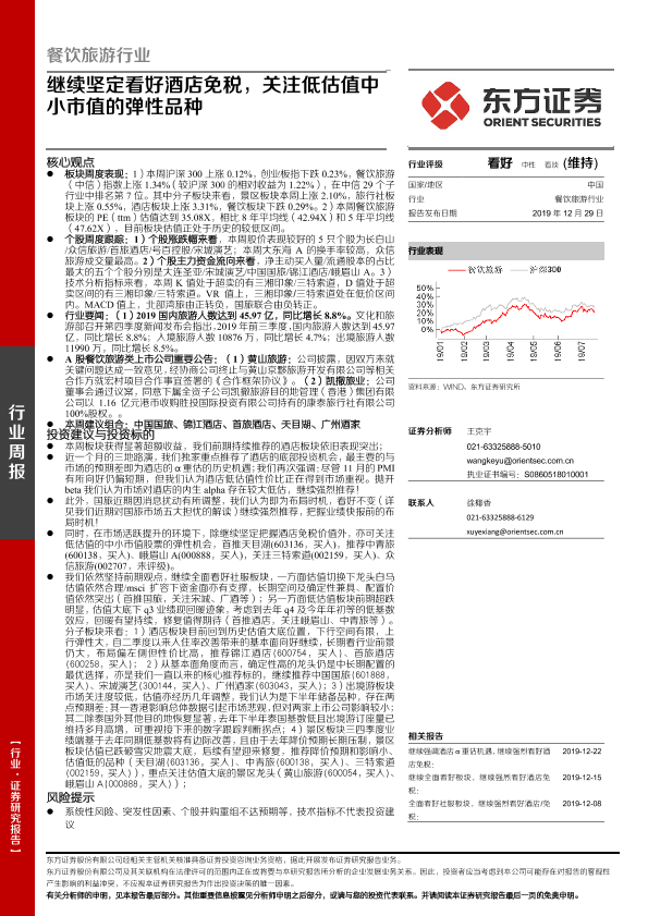 【东方证券】【20191229】继续坚定看好酒店免税,关注低估值中小市值的弹性品种-23页