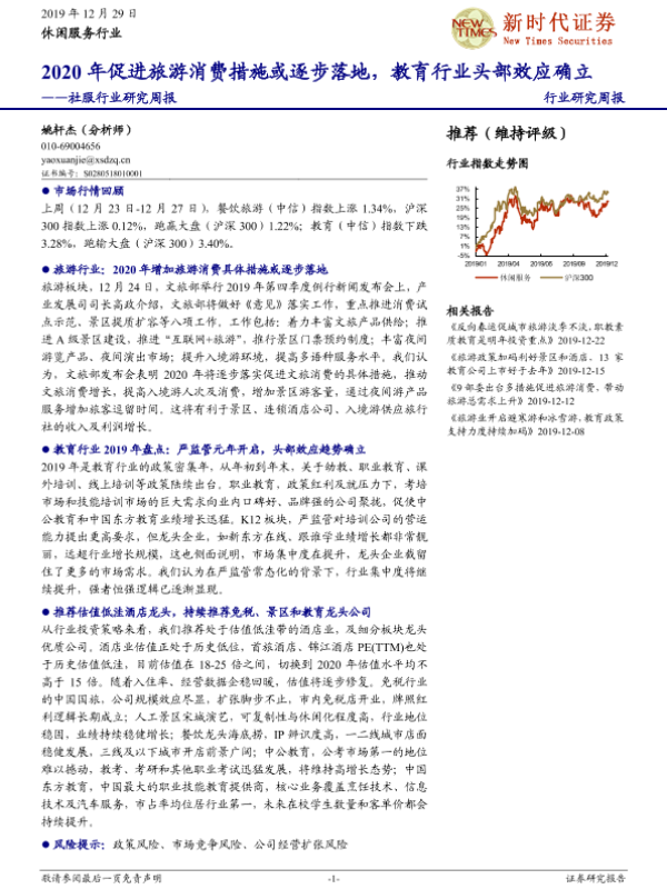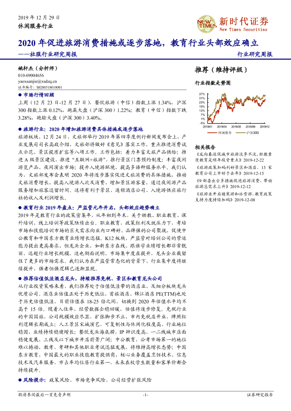 【新时代证券】【20191229】社服行业研究周报:2020年促进旅游消费措施或逐步落地,教育行业头部效应确立-12页