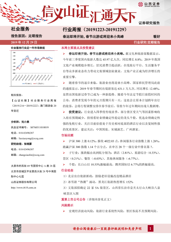 【山西证券】【20191229】社会服务行业周报:春运即将开始,春节出游或将迎来小高峰-10页