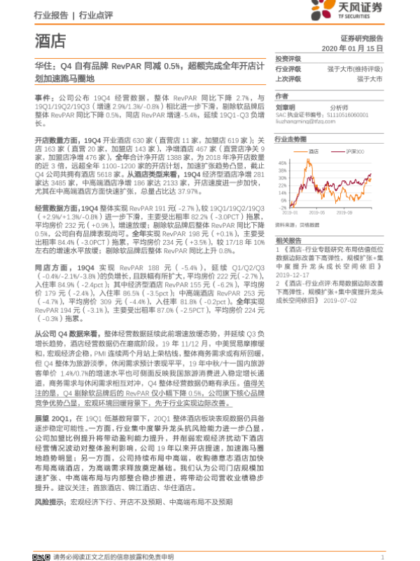 【天风证券】【20200115】华住:Q4自有品牌RevPAR同减0.5%,超额完成全年开店计划加速跑马圈地-4页
