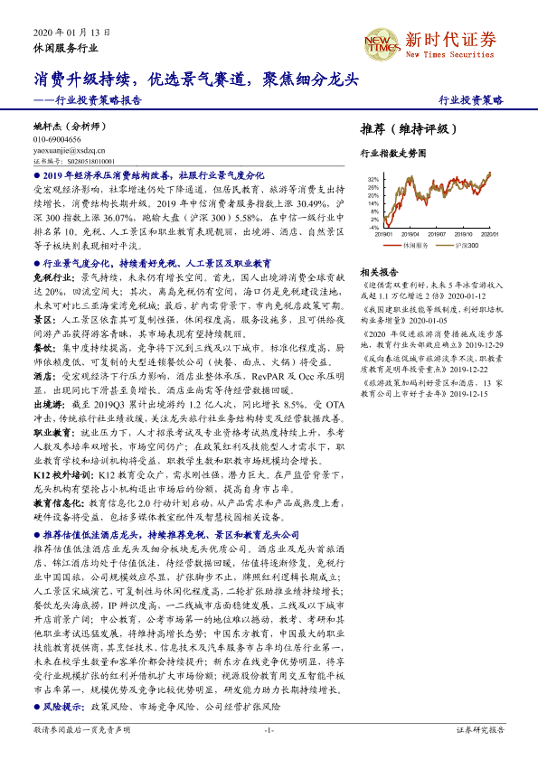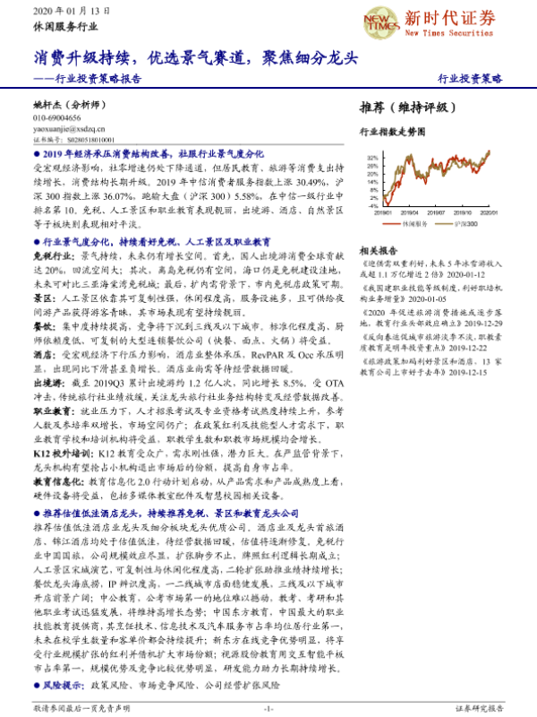 【新时代证券】【20200113】休闲服务行业投资策略报告:消费升级持续,优选景气赛道,聚焦细分龙头-34页
