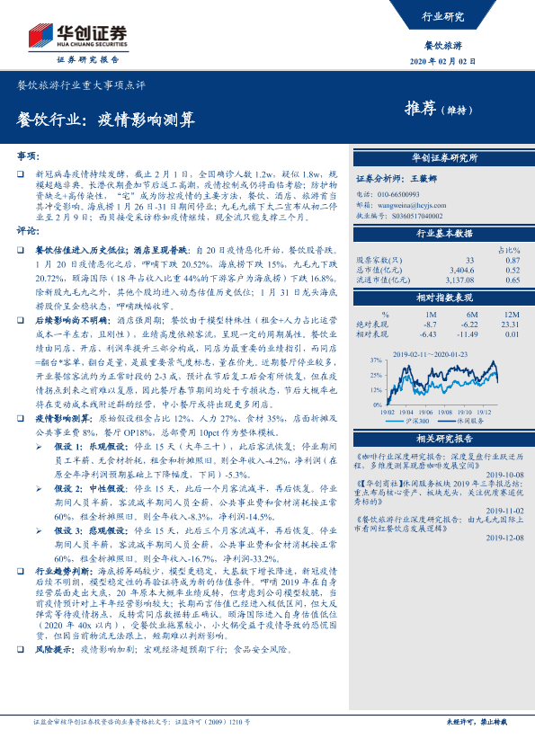 【华创证券】【20200202】餐饮行业:疫情影响测算-3页
