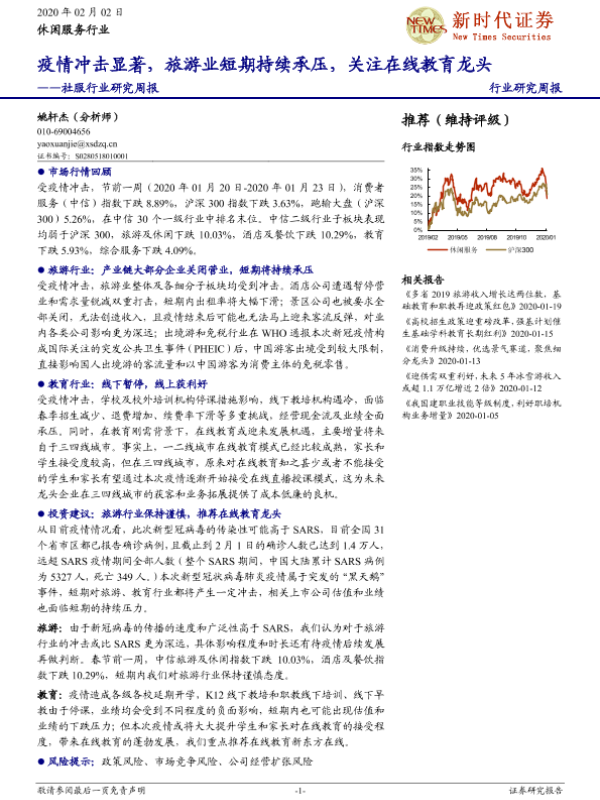 【新时代证券】【20200202】社服行业研究周报:疫情冲击显著,旅游业短期持续承压,关注在线教育龙头-18页