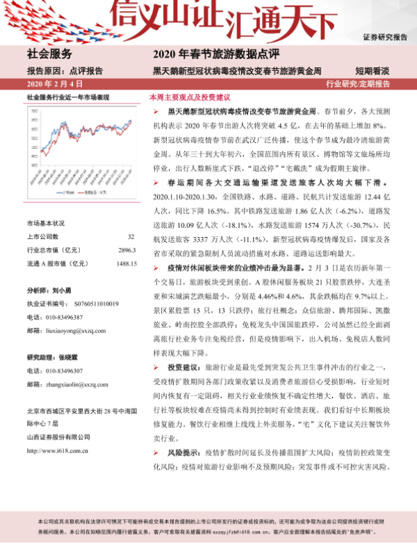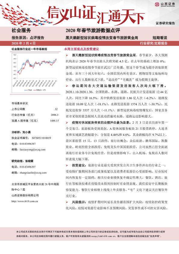 【山西证券】【20200204】2020年春节旅游数据点评:黑天鹅新型冠状病毒疫情改变春节旅游黄金周-6页