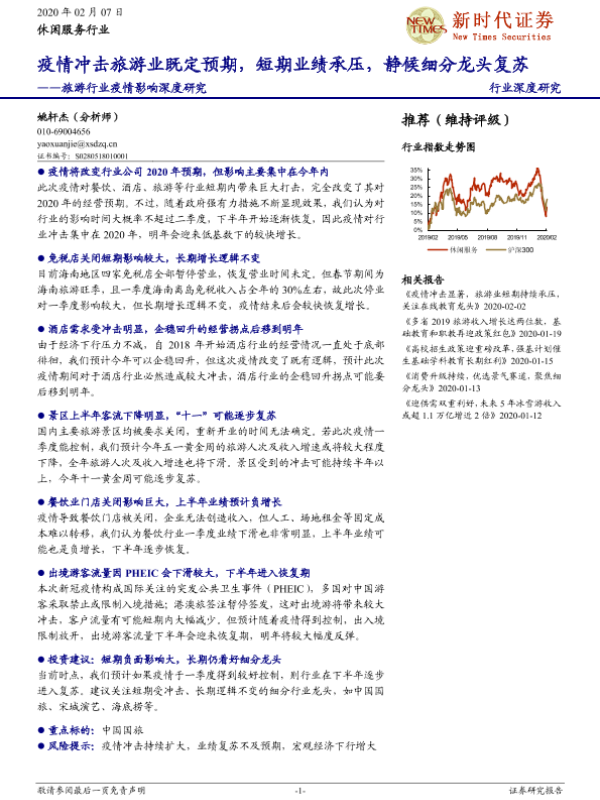 复苏 旅游业 疫情影响 短期承压 细分龙头