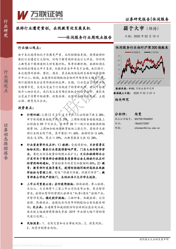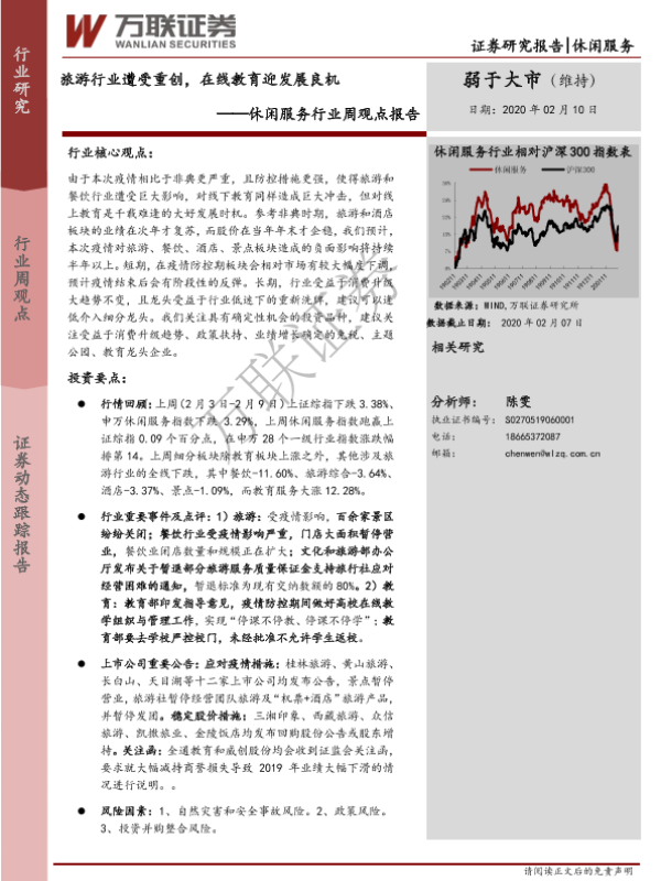【万联证券】【20200210】休闲服务行业周观点报告:旅游行业遭受重创,在线教育迎发展良机-10页