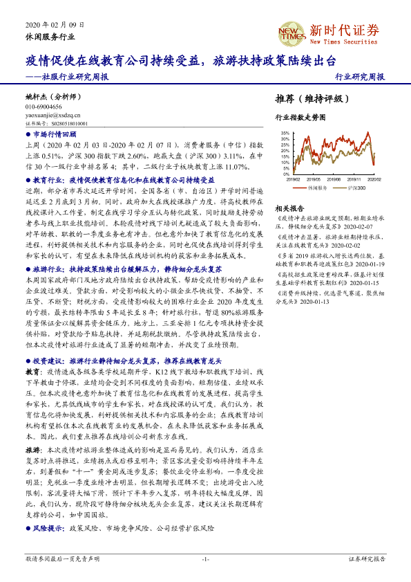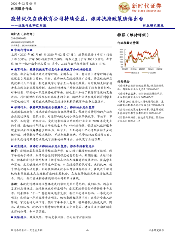 【新时代证券】【20200209】社服行业研究周报:疫情促使在线教育公司持续受益,旅游扶持政策陆续出台-19页