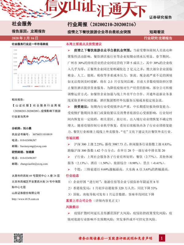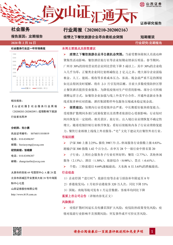 【山西证券】【20200216】社会服务行业周报:疫情之下餐饮旅游企业寻自救机会突围-9页