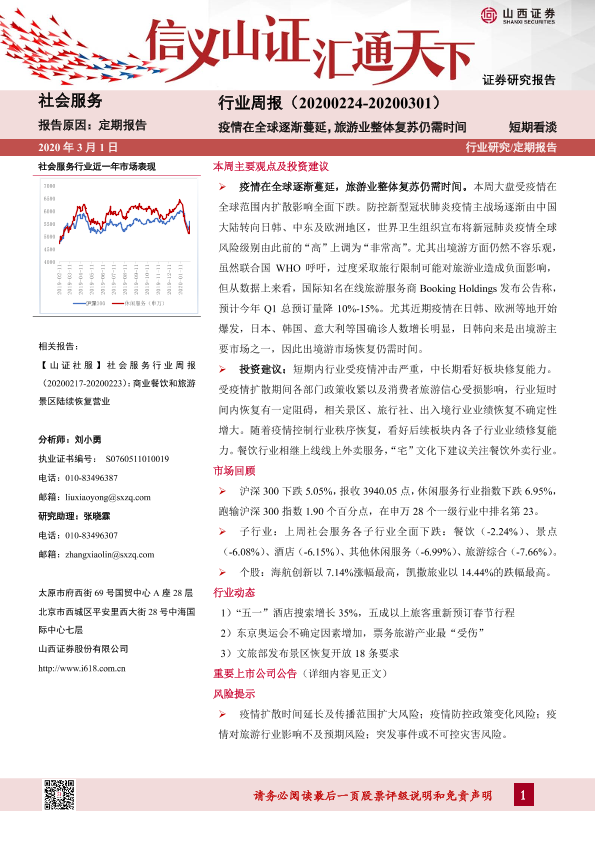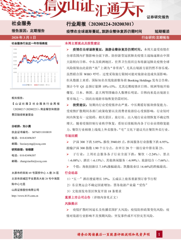 【山西证券】【20200301】社会服务行业周报:疫情在全球逐渐蔓延,旅游业整体复苏仍需时间-10页