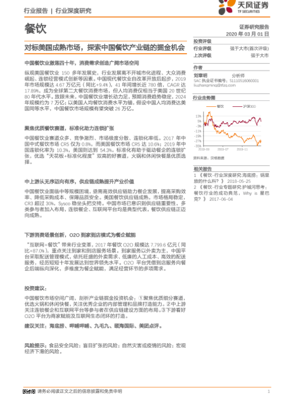 天风证券 住宿餐饮 2020年 PDF 3.85 MB