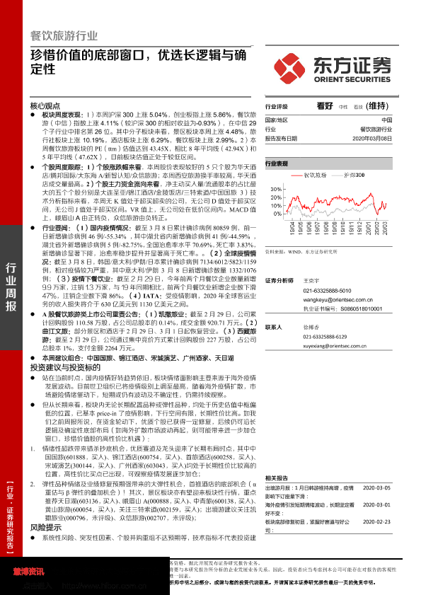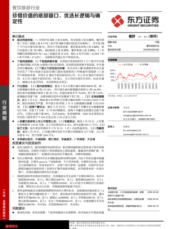【东方证券】【20200308】餐饮旅游行业:珍惜价值的底部窗口,优选长逻辑与确定性-26页