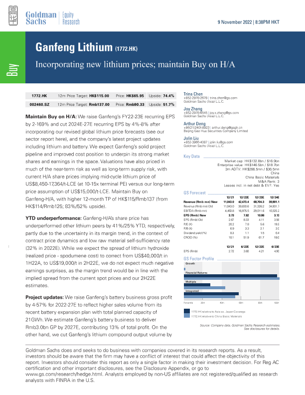 【Goldman Sachs】【20221109】Lithium (1772.HK)_ Incorporating new lithium prices; maintain Buy on H_A-14页
