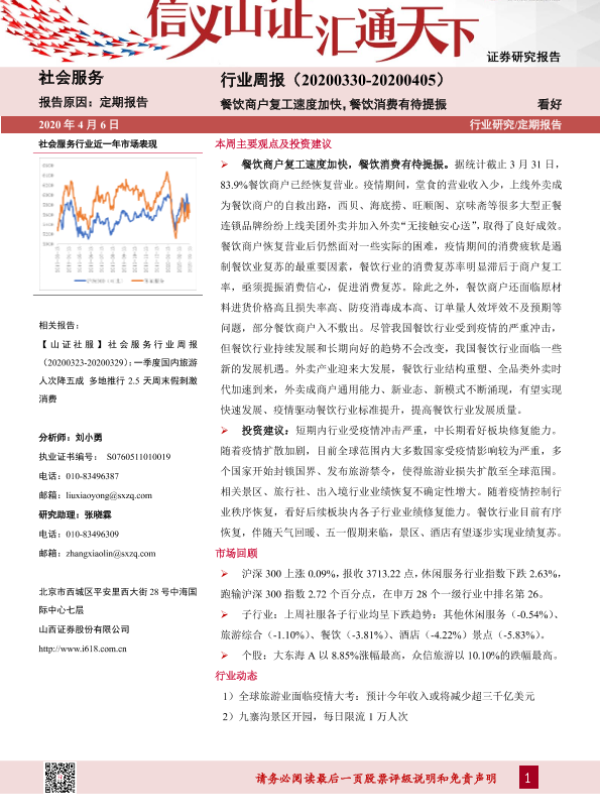 【山西证券】【20200406】社会服务行业周报:餐饮商户复工速度加快,餐饮消费有待提振-9页