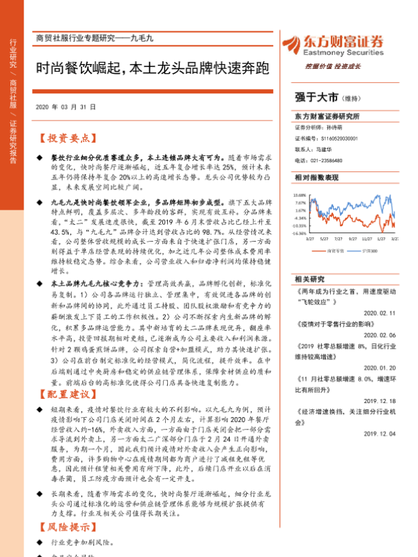 【东方财富证券】【20200331】商贸社服行业专题研究——九毛九:时尚餐饮崛起,本土龙头品牌快速奔跑-20页