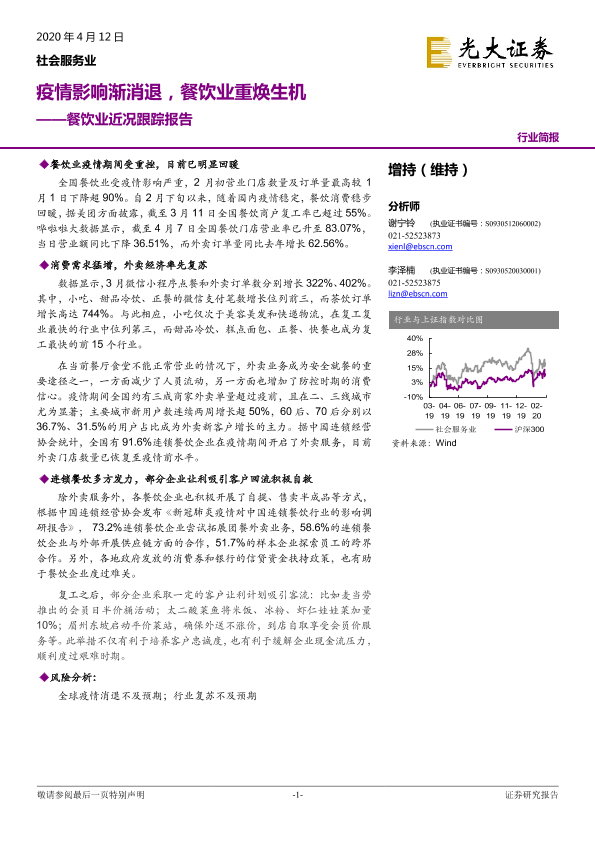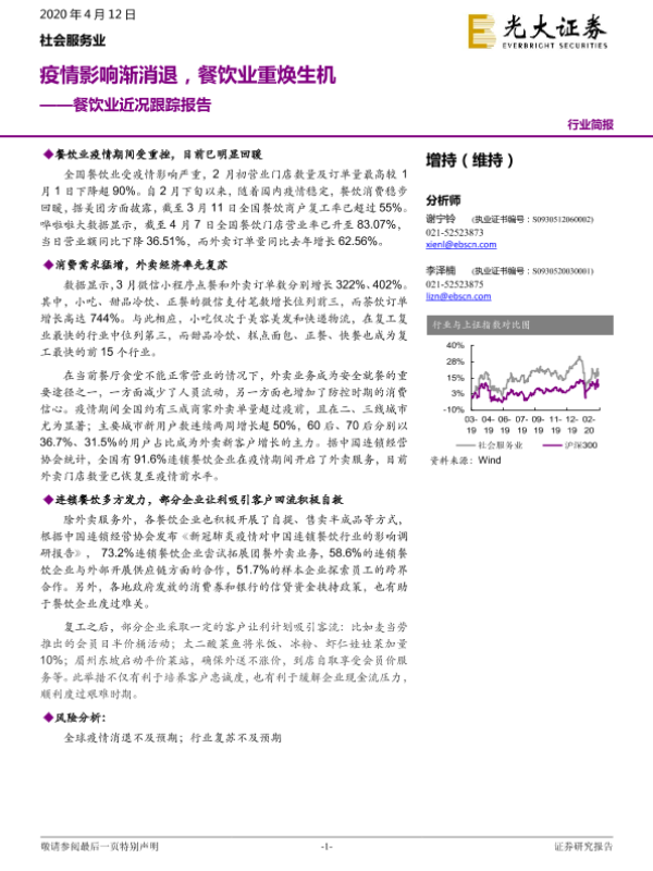 【光大证券】【20200412】餐饮业近况跟踪报告:疫情影响渐消退,餐饮业重焕生机-3页