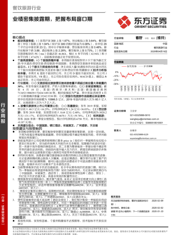 【东方证券】【20200419】餐饮旅游行业周报:业绩密集披露期,把握布局窗口期-23页