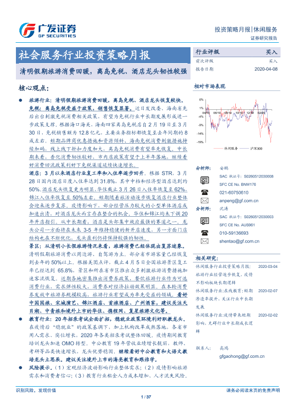 【广发证券】【20200408】社会服务行业投资策略月报:清明假期旅游消费回暖,离岛免税、酒店龙头韧性较强-37页