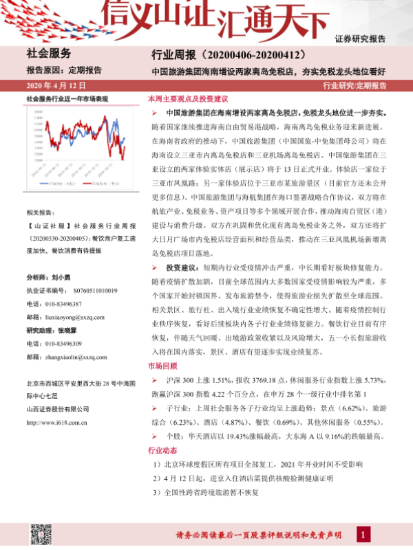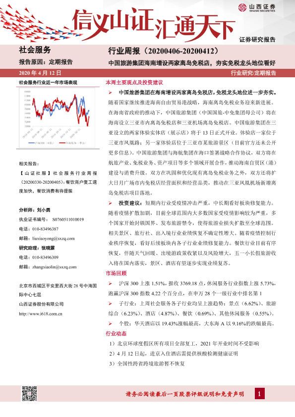 【山西证券】【20200412】社会服务行业周报:中国旅游集团海南增设两家离岛免税店,夯实免税龙头地位看好-9页