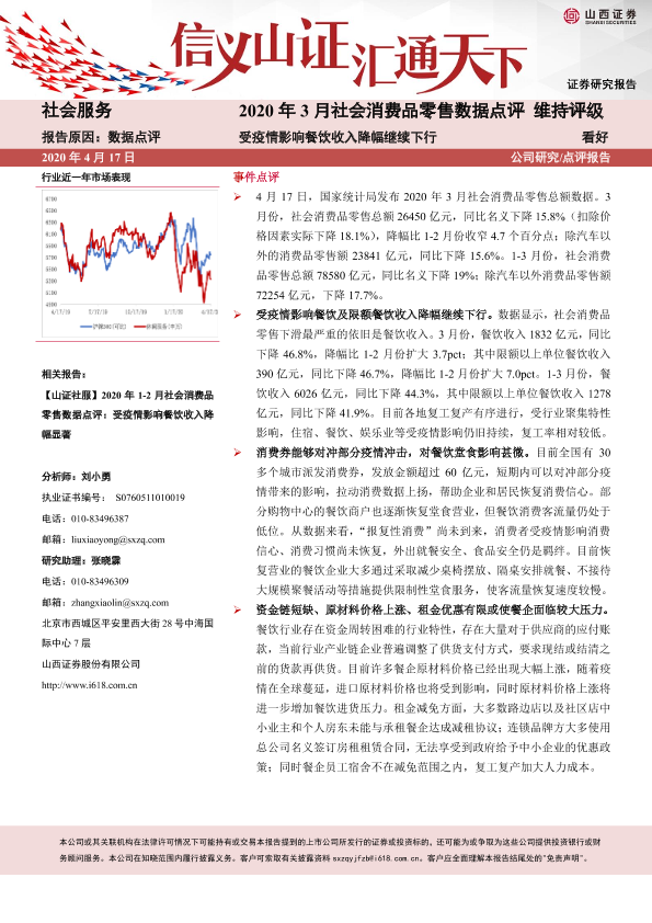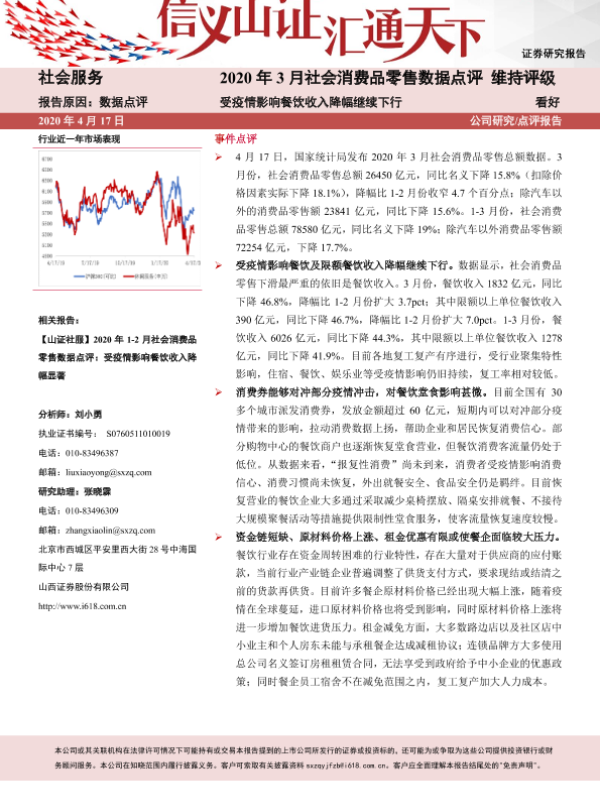 【山西证券】【20200417】2020年3月社会消费品零售总额数据点评:受疫情影响餐饮收入降幅继续下行-4页