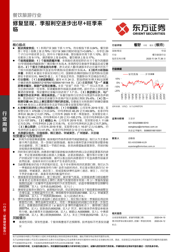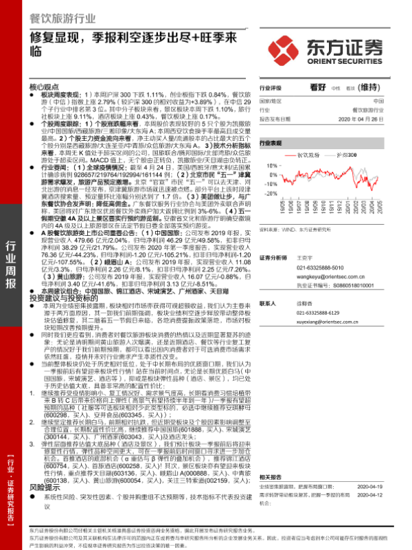 【东方证券】【20200426】餐饮旅游行业周报:修复显现,季报利空逐步出尽+旺季来临-27页