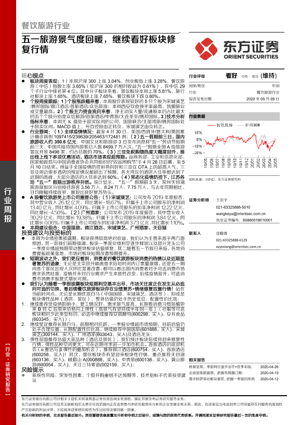 【东方证券】【20200505】餐饮旅游行业周报:五一旅游景气度回暖,继续看好板块修复行情-29页