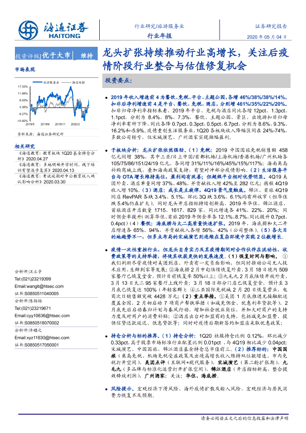 【海通证券】【20200504】旅游服务业行业年报:龙头扩张持续推动行业高增长,关注后疫情阶段行业整合与估值修复机会-20页