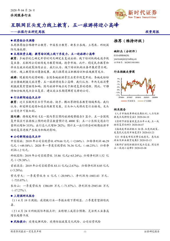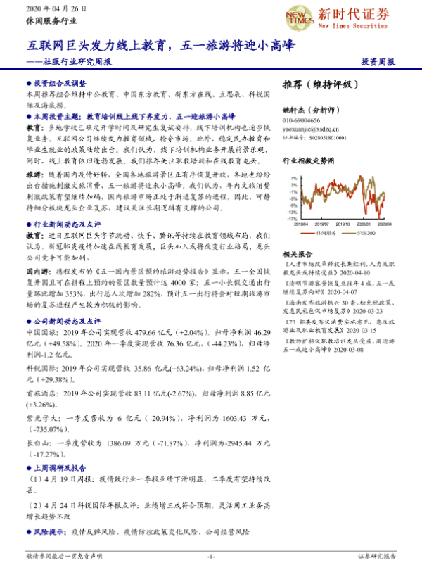 【新时代证券】【20200426】社服行业研究周报:互联网巨头发力线上教育,五一旅游将迎小高峰-21页