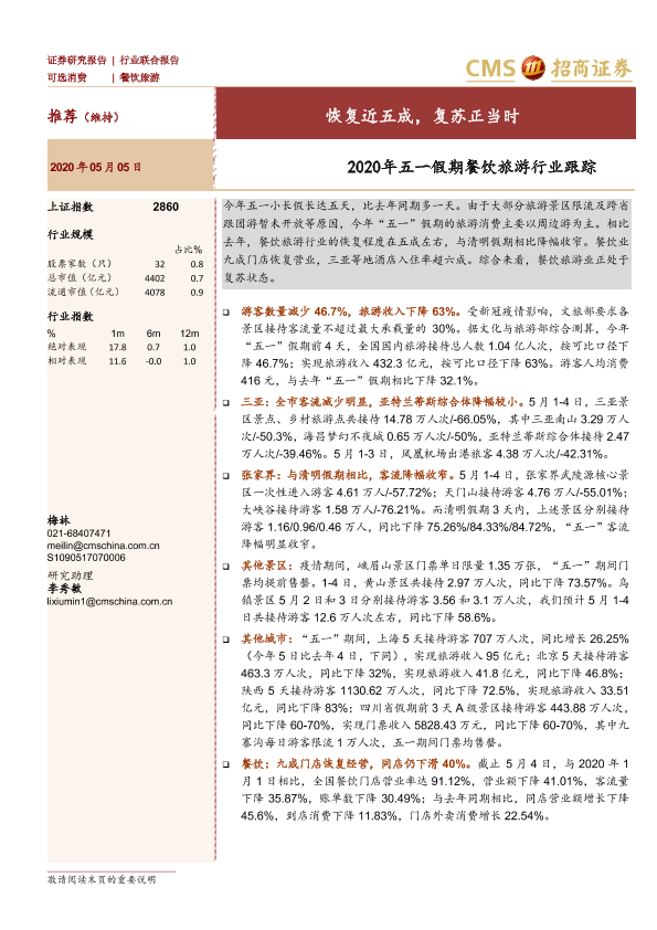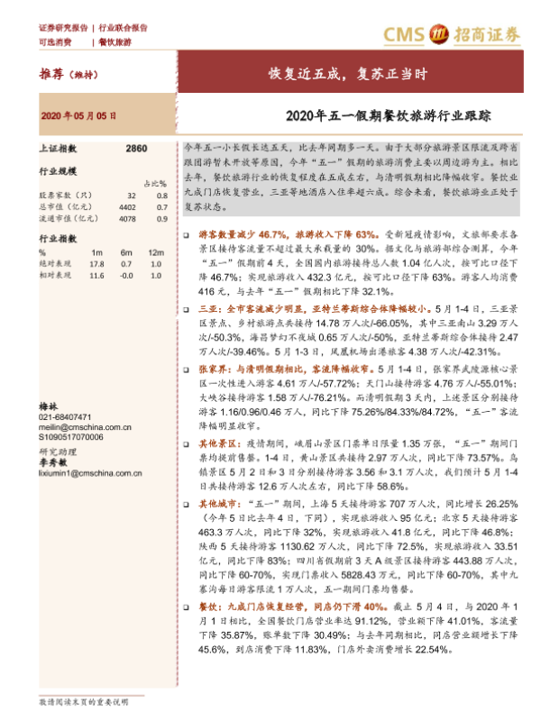 【海通证券】【20200505】2020年五一假期餐饮旅游行业跟踪:恢复近五成,复苏正当时-3页