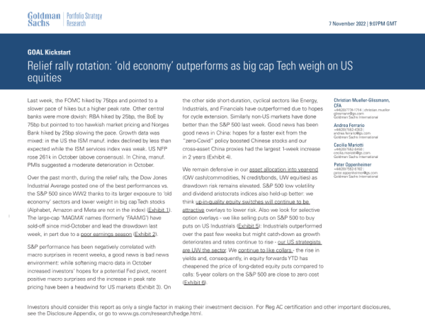 【Goldman Sachs】【20221107】Relief rally rotation ‘old economy’ outperforms as big cap Tech weigh on US equities-30页