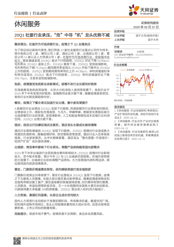 【天风证券】【20200507】20Q1社服行业承压,“危”中寻“机”龙头优势不减-11页