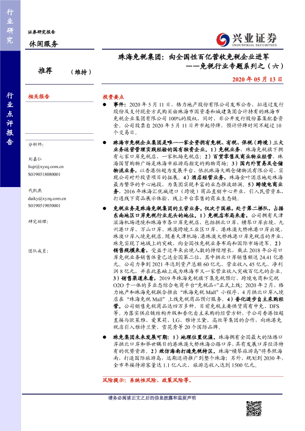 【兴业证券】【20200513】珠海免税集团:向全国性百亿营收免税企业进军-14页