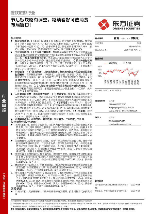 【东方证券】【20200517】餐饮旅游行业周报:节后板块略有调整,继续看好可选消费布局窗口!-23页