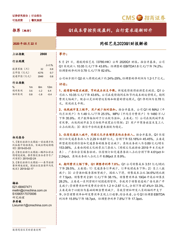 【海通证券】【20200522】餐饮旅游:同程艺龙2020Q1财报解读-5页