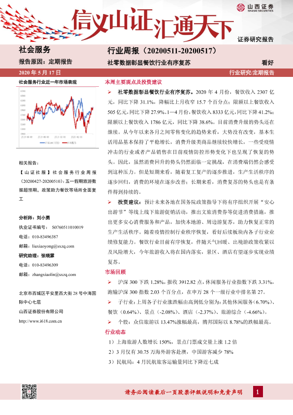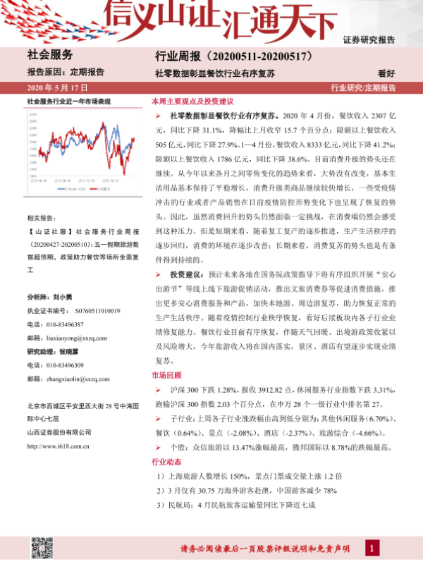 【山西证券】【20200517】社会服务行业周报:社零数据彰显餐饮行业有序复苏-9页